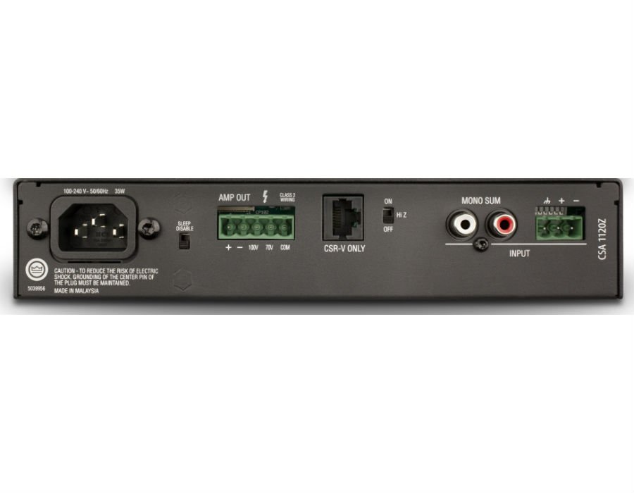Supporting 70V and 100V installations out of the box, CS amps include RJ45 connectors for use with JBL CSR-V in-wall volume controls. Its universal power supply allows every CS amp to accept AC voltages from 100 to 240 VAC, 50/60 Hz.