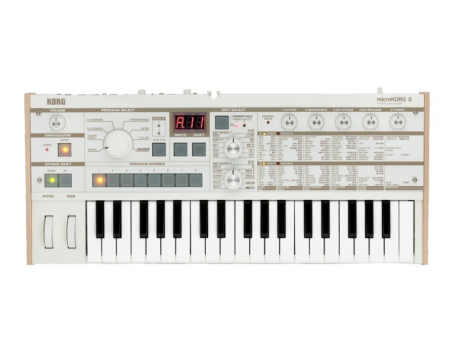 The MicroKORG S from Korg is a synthesizer/vocoder housed in a compact but rugged enclosure and features thirty-seven velocity-sensitive «Natural Touch» mini keys and an integrated high-quality 2+1 sound system. Combining analog modeling with a vocoder provides the user with a wide range of styles and sounds. The microKORG S features an updated sound set with 256 presets and 64 user sets for saving your own creations. What’s more, eight favorites can be saved to the quick program selection for quick performance sets.