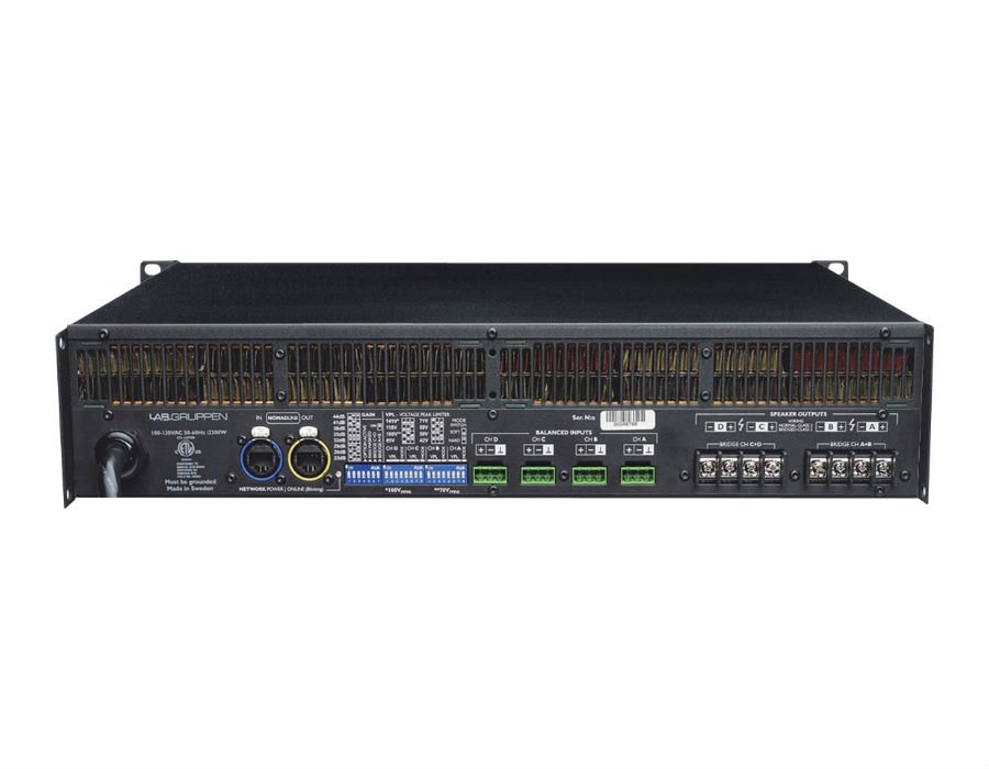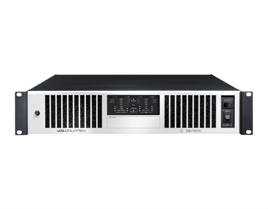 The C 28:4 is one of two mid-power, four-channel amplifiers in the C Series family. Attractively packaged in a 2U chassis, it provides 4 × 700 W output into 4 ohm loads.