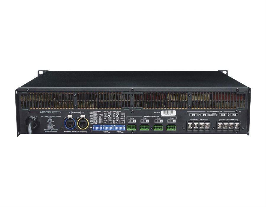 The C 48:4 is the third largest amplifier in the C Series family, delivering an impressive 4 × 1200 W at 4 ohms. The exceptional power output plus a long list of protection and monitoring features are all packed into a 2U chassis.
