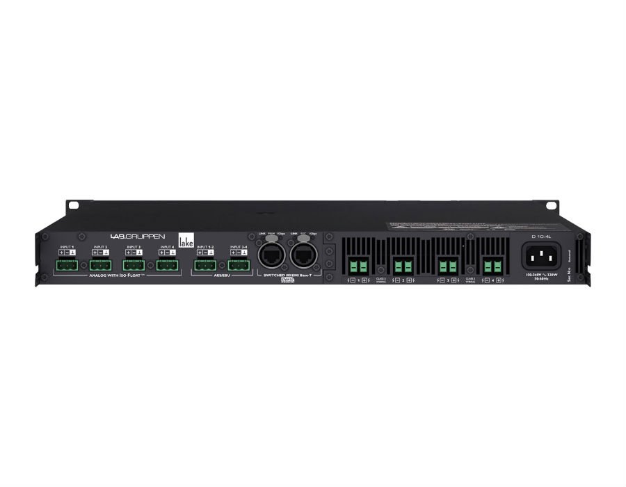 D 10:4L Combines 1000 W of Flexible Power with the Latest LAKE DSP, DANTE Digital Audio Networking and Advanced System Integrity Monitoring.