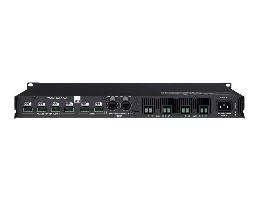 D 20:4L Combines 2000 W of Flexible Power with the Latest LAKE DSP, DANTE Digital Audio Networking and Advanced System Integrity Monitoring.