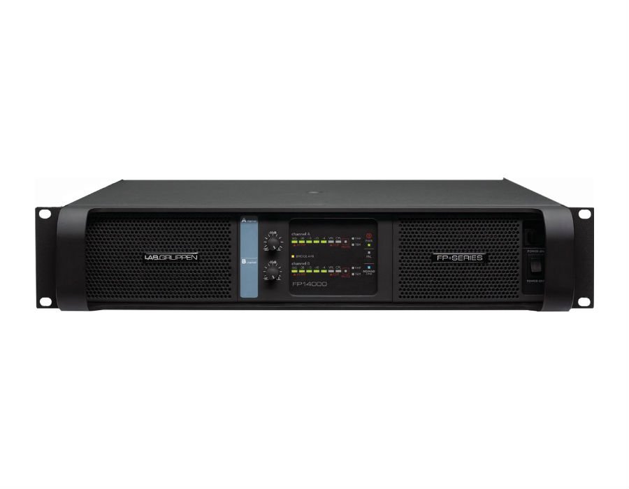 Over the past decade, the tight and transparent sound of LAB GRUPPEN touring amplifiers has earned the praise of renowned FOH engineers and leading sound rental companies worldwide. FP 14000, the new flagship model of the FP+ Series, advances this tradition by further augmenting effective power output to effortlessly handle extreme low-frequency loads.The Regulated Switch Mode Power Supply (R.SMPS) has been updated to provide more sustained high power during extended bursts of low frequency content, while at the same time ensuring stable rail voltages even with wide fluctuations of external mains voltage. The forceful, high-current (83 A peak) output stage relies on LAB GRUPPEN’s patented Class TD topology, a breakthrough in amplifier technology that approaches the efficiency of Class D while retaining the sonic purity of proven Class B designs. A highly refined and efficient circuit layout further optimizes the interaction of R.SMPS and Class TD to produce the unprecedented power density of the FP 14000.