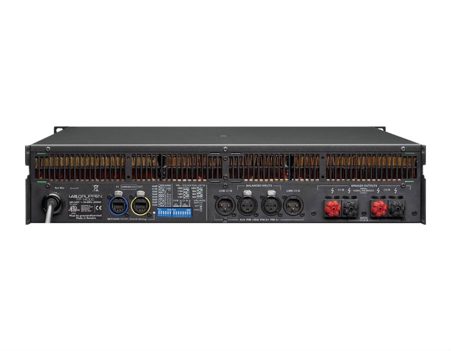 To maximize headroom in any application, the FP 14000 offers adjustable input gain along with LAB GRUPPEN’s exclusive Voltage Peak Limiter (VPL). Adjustable on a per-channel basis, VPL optimizes the output for any load, from a single massive subwoofer to a series of HF compression drivers.