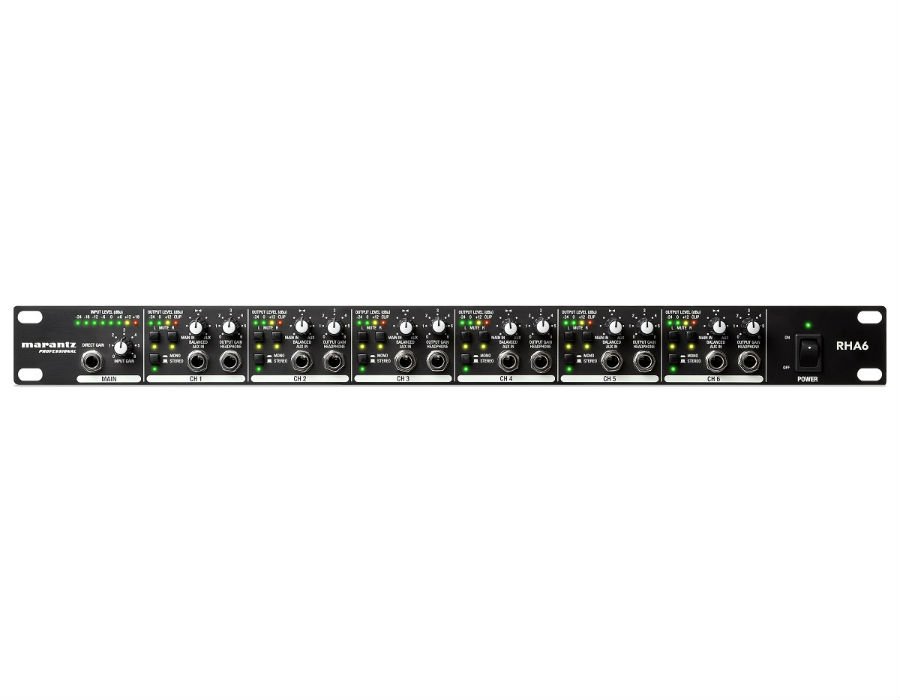 The RHA6 is a 6-channel professional headphone amplification system perfect for studio and live event monitoring. AUX and Direct inputs make it possible to create custom headphone mixes, and additional features such as direct line outputs to connect additional RHA6 units and three headphone outs per channel provide maximum versatility. RHA6 has a minimized circuitry path which means there’s less “stuff” for your signal to pass through, keeping your sound clear and crisp.