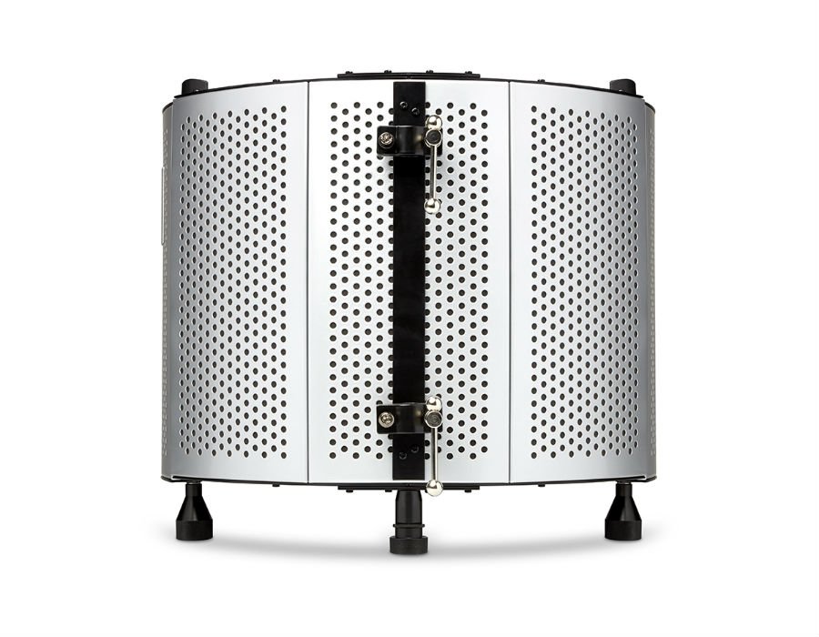 Sound Shield is a professional vocal reflection filter perfectly sized for any studio space. It shields the recording microphone from those distracting acoustic artifacts, creating a cleaner, more focused, more intelligible recording. Sound Shield has five absorptive walls (three stationary, two foldable) consisting of sculpted sound-absorptive surfaces, backed by high-density EVA foam for additional sound attenuation. It can be custom-shaped around the microphone to create a very focused, precise recording in any environment.