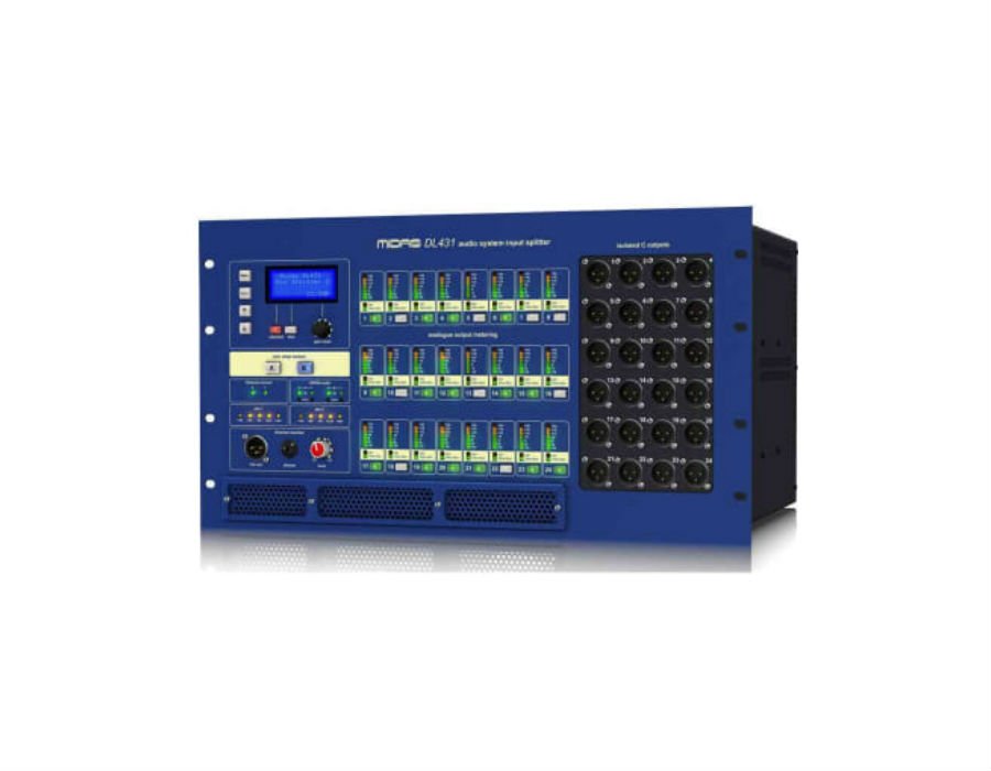 The interface unit shall be designed for digital audio mixing applications and be optimised for use in live performance. It shall feature 24 input channels with three microphone preamplifiers per input channel – two independent remotely-controlled variable gain microphone preamplifiers with 2.5 dB gain steps and one fixed gain microphone preamplifier. Each variable gain preamplifier shall feed a rear panel servo-balanced electronic output and each fixed gain preamplifier shall feed a front panel transformer-isolated output all on industry-standard XLR connectors for a total of 72 outputs. The interface unit shall be capable of opera-ting at 96 kHz sampling rate.