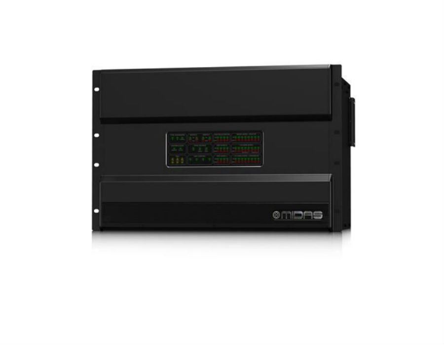 The audio system engine shall be designed for digital audio mixing applications and be optimised for use in live performance. It shall feature 168 simultaneous input channels and 99 time-aligned and phase-coherent output mix buses and operate at 96 kHz sampling rate.