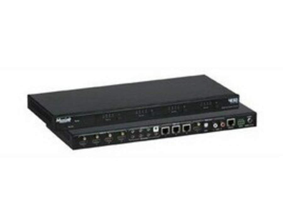The HDMI 4×4 Matrix Switch Kit, HDBT, PoC, 4K/60 (4:2:0) allows up to four (4) different HDMI sources to be connected and/or distributed to up to four (4) HDMI displays. The 4K HDMI Matrix Switch supports three (3) HDBT outputs for long distance connectivity and one (1) HDMI output for local connectivity. The Kit includes three (3) HDBT PoC Receivers which are powered by the Matrix Switch, and support distances up to 70m at 1080p and 40m at 4K via Cat5e cable. Management functions for this 4K HDMI Matrix Switch include front panel pushbutton, IR, RS232 and webserver interface. Software updated are supported via a USB port.