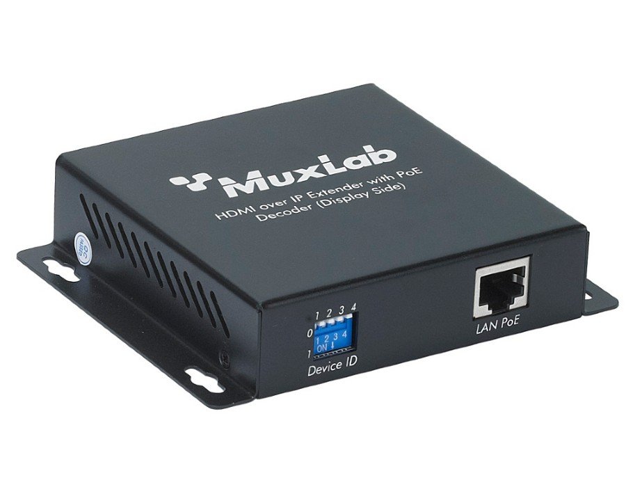 The 500752-RX from MuxLab is the IP Decoder unit that converts the IP packets back to the original HDMI bitstream for playback via an HDMI display. The HDMI over IP Extender system allows an HDMI source to be connected via any Ethernet LAN thereby allowing AV broadcasts to be set up and changed without the need to install a dedicated cabling system.