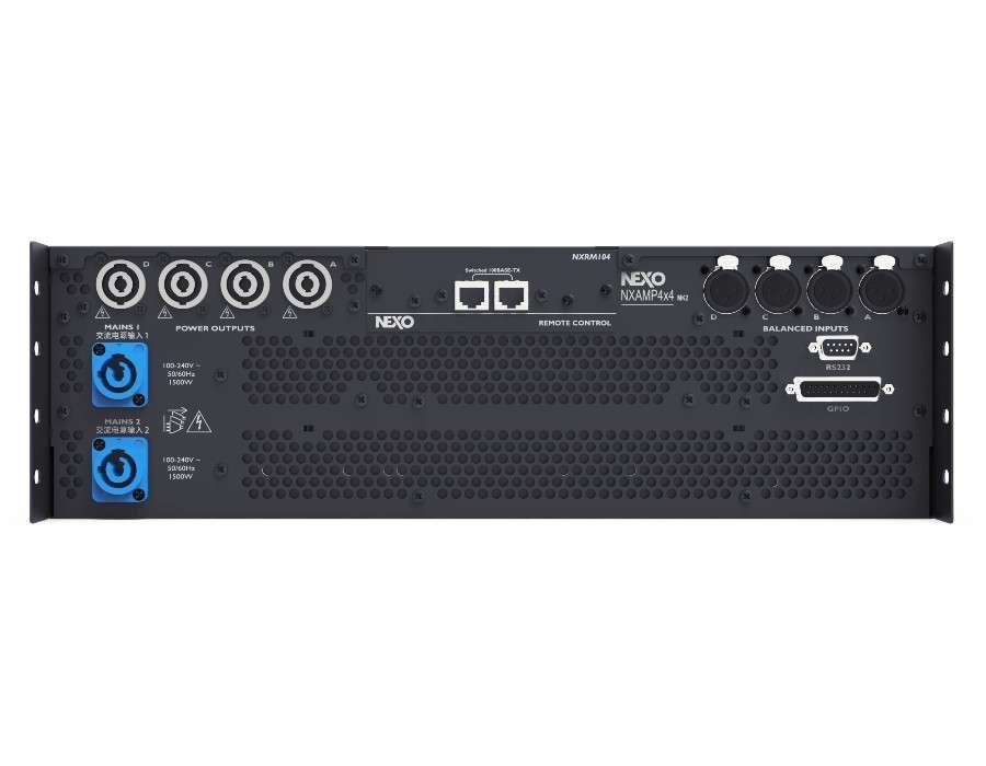 Rated at 4 X 4500 Watts, the NXAMP4X4MK2 combines advanced signal processing with four state-of-the-art Class D amplifiers to create a flexible, light-weight powering and control solution for NEXO loudspeaker systems.