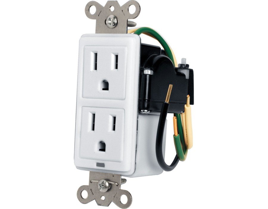 Two AC receptacles provide surge protection. Fits most standard single gang plastic or metal boxes.