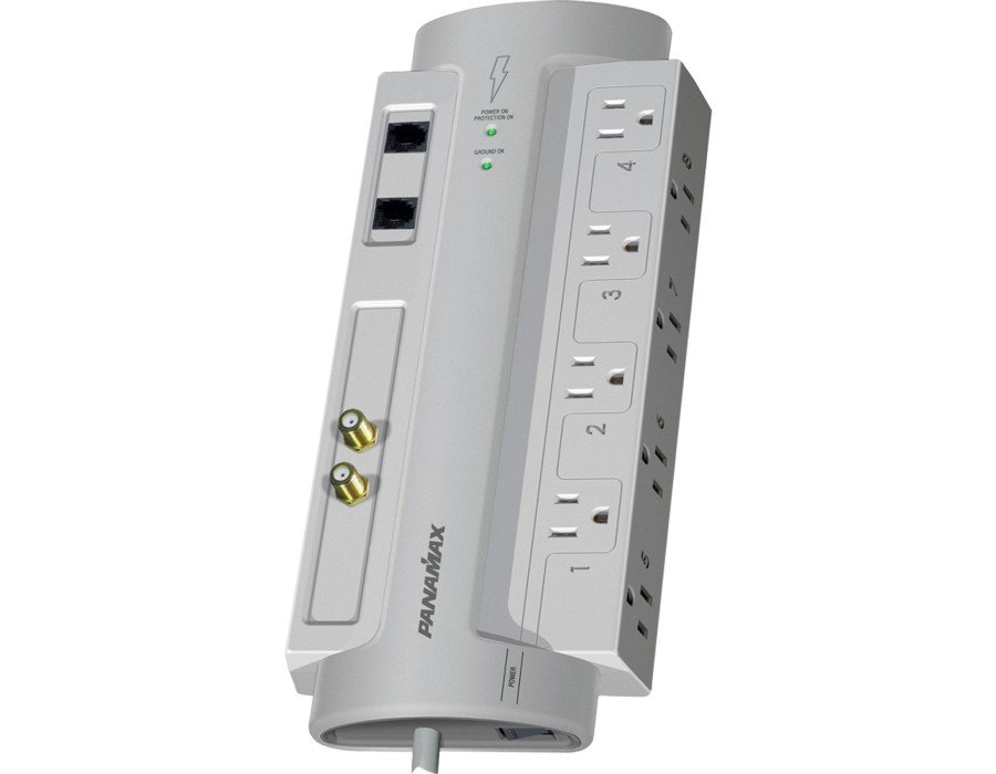 AC power, telephone and coax lines can provide direct pathways for surges and spikes to enter and damage expensive audio/video equipment. Panamax’s SP8-AV eliminates voltage irregularities and protects your AV system.
