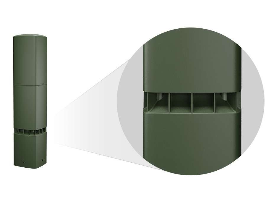 • Unobtrusive green color and style allows it to blend with the environment (or paintable exterior allows for further customization)