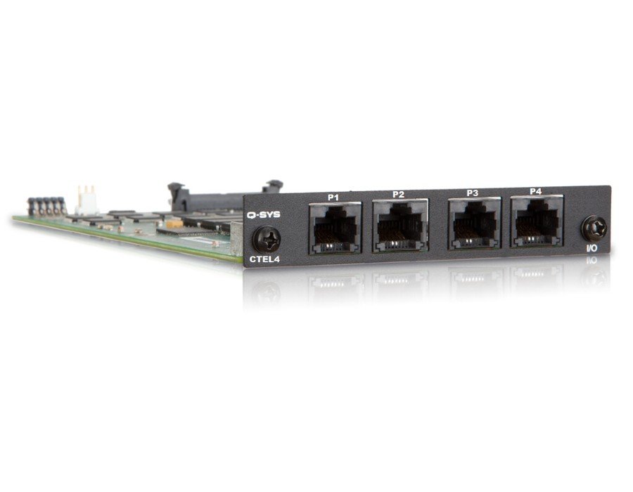 The CTEL4 card provides four RJ-11 interfaces to connect the Q-SYS Core or I/O Frame to analog telephony (POTS) environments.