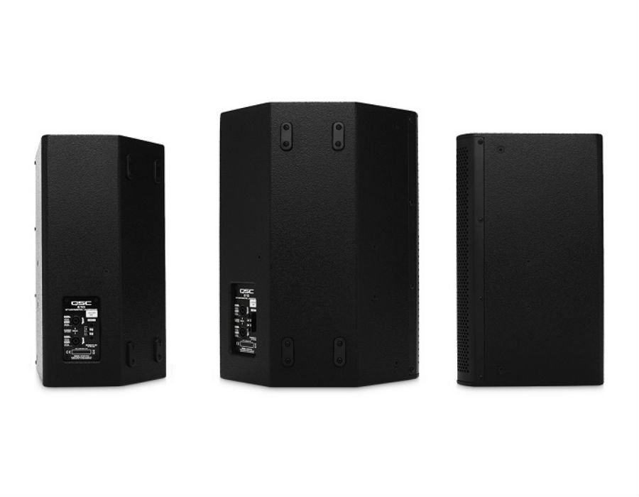 The E10 is a compact, two-way loudspeaker with a 10-inch, die cast frame woofer with a 2.5-inch voice-coil housed in a multi-purpose enclosure that’s at home in stage monitor or main PA deployment. It incorporates QSC’s DMT (Directivity Matched Transition) design with a wide 85° coverage. When used as a stage monitor, the E10 is angled up at a 55° angle allowing it to be placed near the performer when used on a crowded stage.