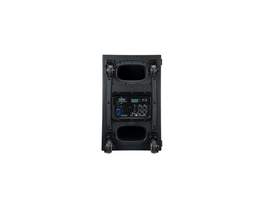 Powered by a 3,600 Watt Class D amplifier, processed with the latest DSP technology, and featuring dual 12-inch long excursion drivers each arranged in a 6th order band pass chamber, these components all combine seamlessly to produce a staggering 15 dB more output at the front of the cabinet than at the rear. Highly portable, the cabinet features comfortable, aluminum handles and four, rear-mounted casters. Two M20 sockets accept a 35 mm loudspeaker pole in either horizontal or vertical orientation.