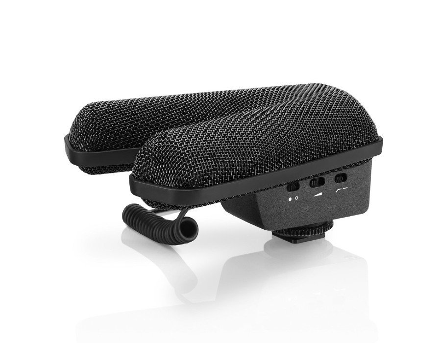 The MKE 440 has two aligned and matched mini shotgun mics ensuring that the MKE 440 captures the audio you want while rejecting off-axis noise. This feature sets it apart from conventional stereo microphones. With its optimized acoustic characteristics and adjustable sensitivity, the MKE 440 is ideally suited for speech, music or ambience. The stainless steel micro-mesh wind protection reduces wind noise and protects the fine high frequency details in your sound.