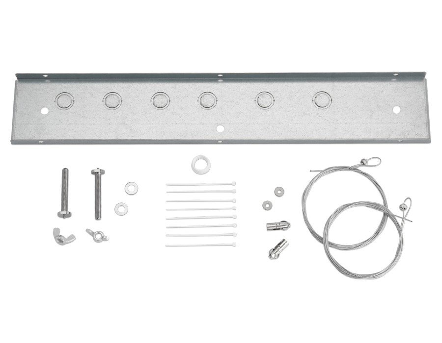 The A710-TB Suspension and Ceiling Mount Kit allows for easy installation of the MXA710 Linear Microphone in ceilings with ceiling grids. Mount the microphone directly to ceiling panels or hang the microphone from the grill using the included cables. Use one bracket to install the MXA710-2FT and two brackets for the MXA710-4FT. Each panel mount has holes for cable routing and includes a hardware kit for both mounting options.