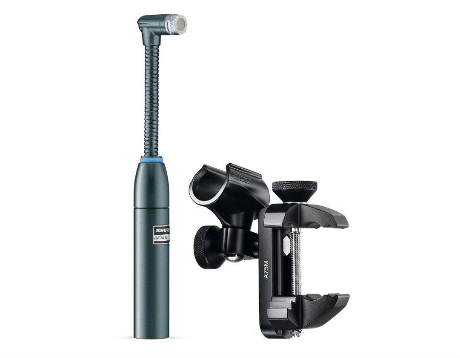 The Shure BETA98AMP is a precision-engineered miniature cardioid condenser microphone for professional sound reinforcement and studio recording. Features an integrated XLR preamplifier with a flexible gooseneck and the A75M Universal Microphone Mount for accurate placement in any configuration of toms, snares, or percussion. An extremely uniform cardioid polar pattern provides excellent gain-before-feedback, off-axis rejection of unwanted noise, and high maximum sound pressure level (SPL).