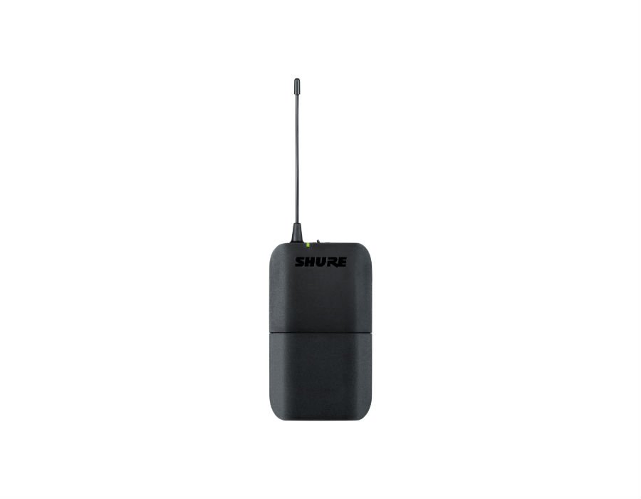 The Shure BLX1 is a bodypack wireless transmitter compatible with BLX Series receivers. With a lightweight, ergonomic design, it is comfortable for performers and presenters to wear, while providing up to 14 hours of continuous use with the two included AA batteries, at a range up to 300′.