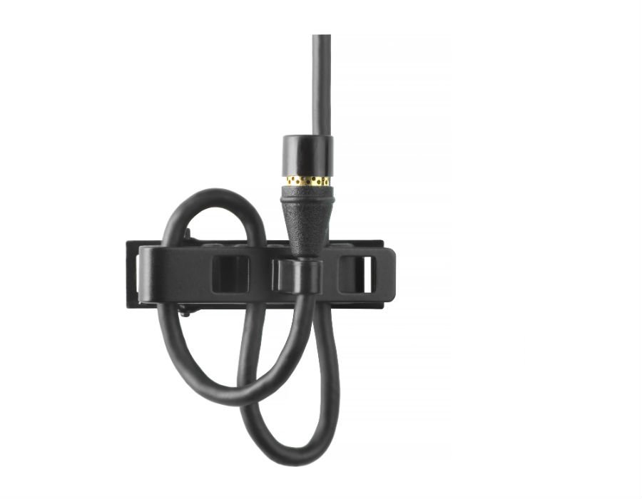 Lavalier microphone provides uncompromised sound quality and high reliability with minimal visibility. It features CommShield technology to stop RF interference, user-changeable equalization caps, and a windscreen for wind protection.