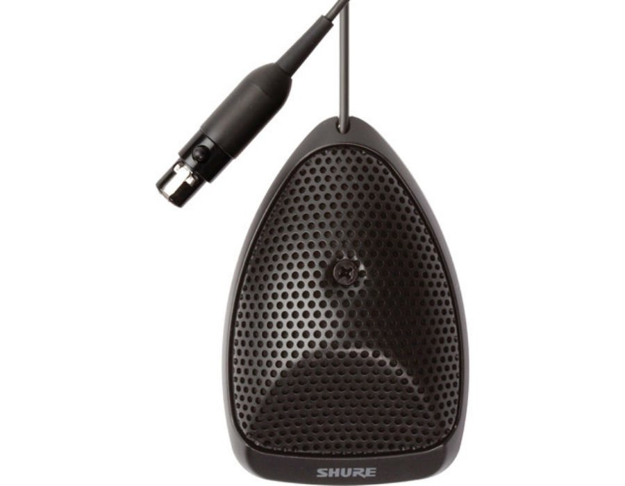 The black MX391/C from Shure is a small, surface-mounted electret condenser microphone. It is designed to be mounted on conference tables, stage floors, and lecterns. Its high sensitivity and wide frequency range make it especially suitable for picking up speech and vocals in sound reinforcement and recording applications.