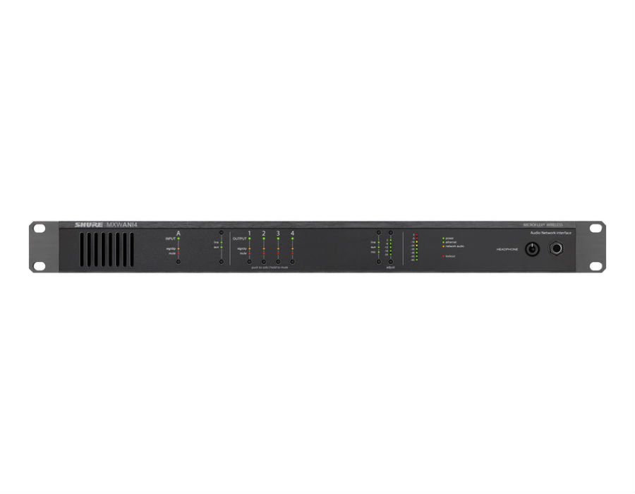 MXWANI4 enables easy out-of-the-box system setup with no additional networking hardware required. ?With per-channel analog outputs, it is the central point for connecting and distributing Microflex Wireless systems to conference room AV networks.Shure MXWANI4