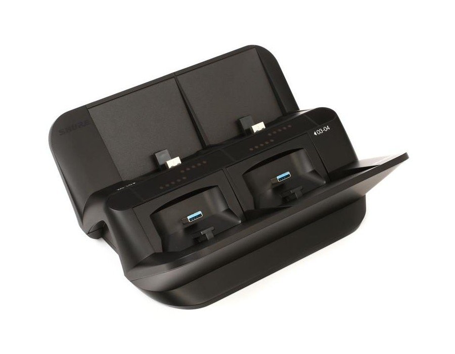 The Shure SBC450US is a 4-bay docking charger for the SB900 lithium-ion rechargeable batteries that power ULX-D and QLX-D digital wireless systems. The SBC450US includes a power supply; you can add up to three SBC450 chargers (sold separately) to charge up to 16 batteries at once. The charging units conveniently lock together, and the batteries can be charged by themselves or while installed in beltpacks or handheld transmitters. If you’ve got a Shure digital wireless system, Sweetwater recommends.