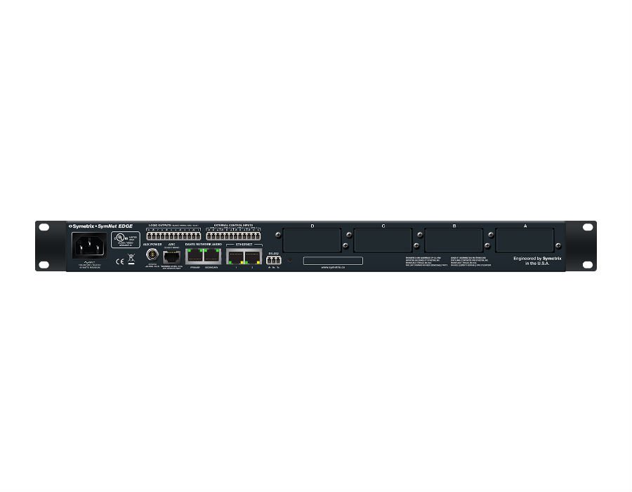 Dante™ in Our DNA. Edge DSPs are equipped with 128 (64×64) redundant Dante channels. The Dante protocol enables ultra-reliable multi-channel audio networking over IP. Together, Symetrix and Dante provide the fastest possible way to implement, control, and maintain a system of networked DSPs and accessories – including third party Dante-enabled microphones, loudspeakers, power amps, and mixing consoles.