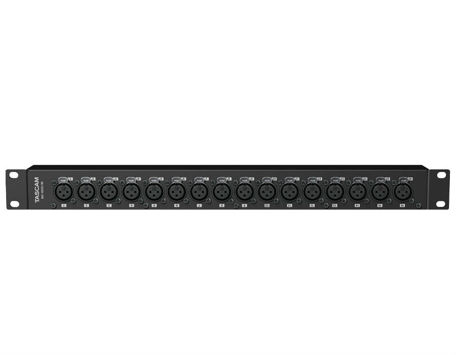 The TASCAM BO-16DX/IN is a rugged, rackmounted audio adaptor designed for professional installation and live sound applications. 16 front-panel XLR Inputs are internally bridged to dual D-Sub output connectors on the rear panel, providing a fast and easy way to interface between stage boxes, FOH and monitor mixing consoles, audio over IP convertors and more.