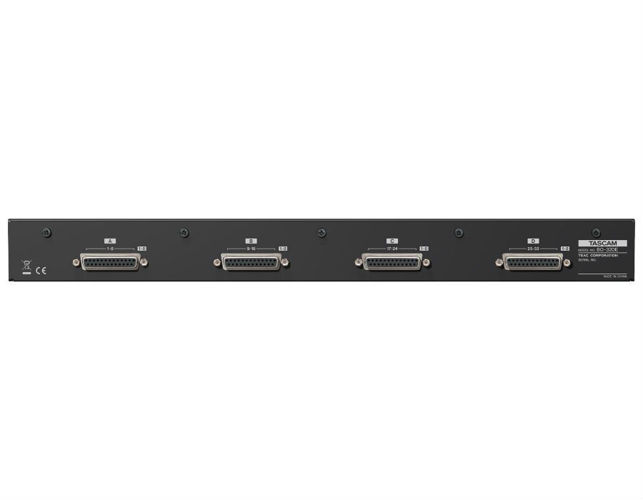 The TASCAM BO-32DE is a rugged, rackmounted audio adaptor designed for professional installation. 32 front-panel Eruoblock connectors are internally bridged to four D-Sub output connectors on the rear panel, providing fast and easy I/O and interconnectivity between CD players, Digital Audio players, Mic Preams, Zone Mixers, Distribution Amplifiers Audio over IP Convertors and more.