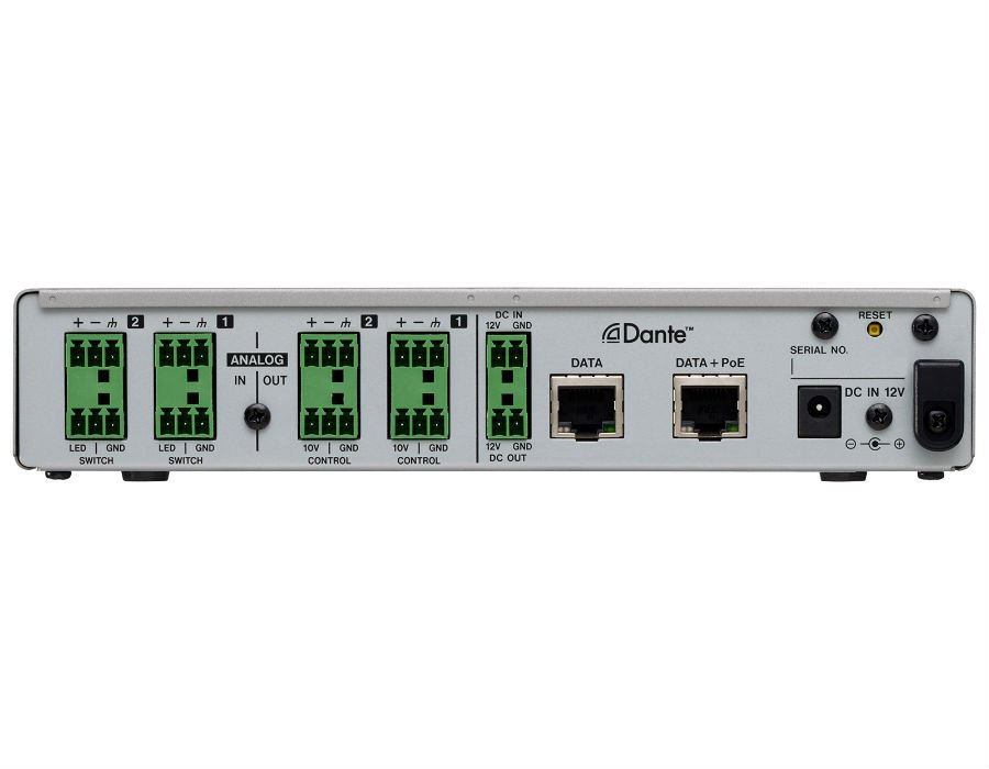 Built-in DSP 2 mic/line input / 2 line output Dante converter to respond to various needs of contractor market and professional audio scene.