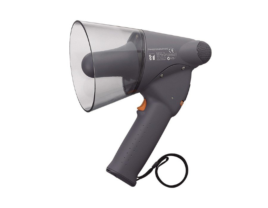 The ER-1203 is a compact splash-proof megaphone rated at 3 W output and features IPX5 water-jet-resistant designs. Handle and microphone with anti-bacteria treatment improve hygiene and safety during use