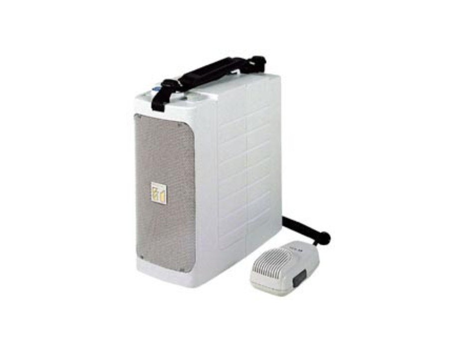 The ER-604W is a compact, lightweight shoulder-type megaphone with whistle signal. It’s close-talking microphone has a handy-to-operate volume control and press-to-talk switch. External microphone inputs on the unit’s rear panel can accept an optional microphone or a headset microphone for hands-free use. In addition, an AUX (auxiliary) input can accept a CD, MD, or cassette player.