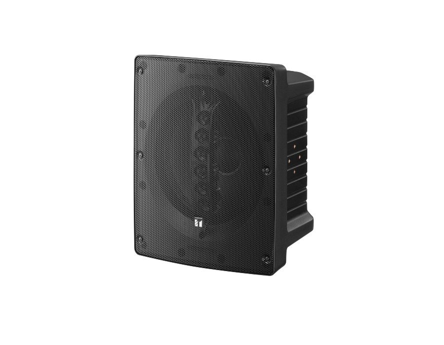 Features include two-way bass-reflex design, rugged polypropylene enclosure with a 12″ or 15″ low frequency driver and coaxial tweeter array incorporating six balanced dome tweeters. HS Series speakers provide narrow-directivity control (90° horizontal x 40° vertical). Model options include black or white enclosures. All models include a user attachable lifting handle and rubber feet for straight positioning.