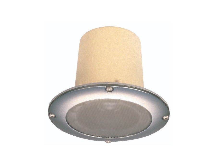The PC-3CL is a completely-sealed, flush-mounted ceiling speaker made up of a high power handling, splash-proof, small full-range speaker employing a plastic film diaphragm. Its chemical-resistant grille makes the speaker ideal for use in clean rooms, hospital operation rooms, and hot and humid locations such as bath rooms and wet sauna rooms.