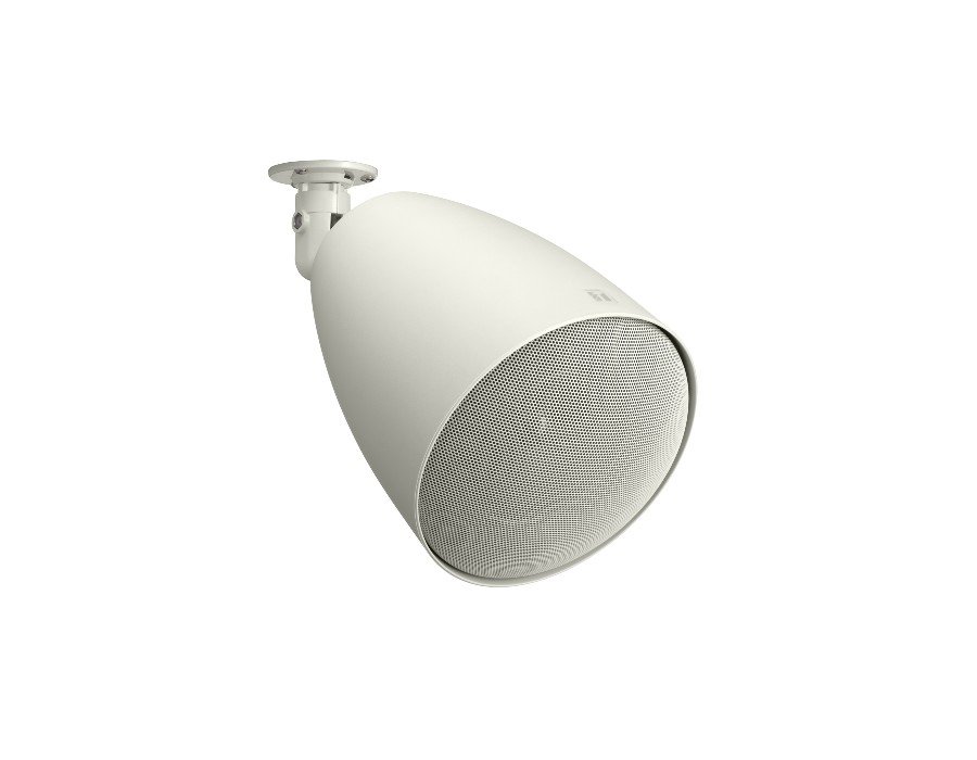 The PJ-304 projection style speakers are built within a bass-reflex HIPS resin enclosure 5″ (12cm) cone-type projection speakers intended for ceiling and wall installation. The PJ-304 also includes a balanced dome tweeter. They have an outstandingly stylish design that is inspired by the finest lighting fixtures, allowing them to be harmoniously installed with lighting equipment. They are ideally suited for such applications as BGM and announcements at airports, subway stations, art museums and shopping malls. The speakers are easy to repaint, extending the range of design needs they can meet. A supplied swivel bracket accessory allows for flexible speaker angle adjustment. PJ-304 is driven on a high- and low impedance (8 ohm) line. Input impedance is adjustable with rotary switch on the upper side of the speaker.
