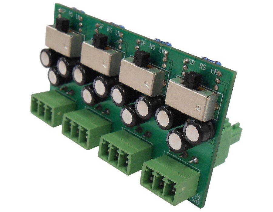 The Q-N8000LC is an accessory adapter for N-8000RS or N-8010RS, N-8000 Substation Interface Unit, which converts the output signal of the interface unit into a line level audio signal or a 25V line speaker output. It is equipped with four channel outputs with level selection switch, which allows individual level adjustment for each channel.