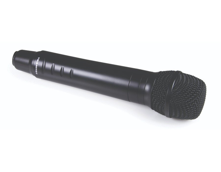 Fully synthesised UHF handheld transmitter with features including: integral LCD, IR data link, battery status indicator, digital gain control, microphone mute switch.