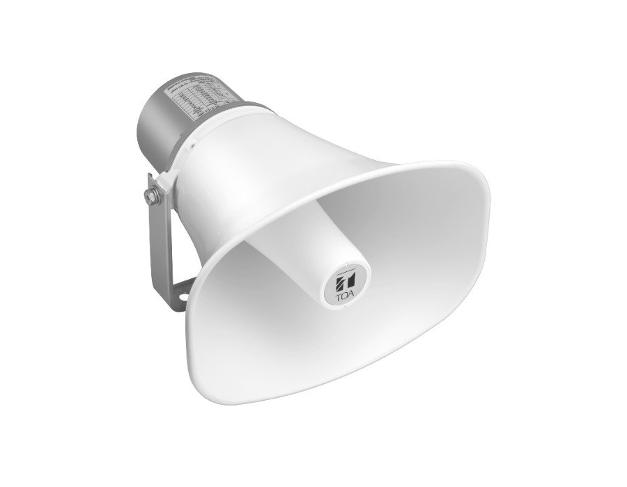 TOA SC SERIES PAGING HORN SPEAKERS provide intelligible voice paging and tone signaling for indoor and outdoor sound system applications. Fully weather-resistant for reliable operation in demanding environmental conditions, SC Series models are available with a choice of power ratings from 10W to 50W. High impedance models include SC-610T (10W), SC-615T (15W) and SC-630TU (30W), each with a built-in 25 V / 70.7 V transformer with external screwdriver-adjustable power taps. Low impedance models include SC-610 (10W, 8 ohm), SC-615 (15W, 8 ohm), SC-630 (30W, 8 ohm) and SC-651 (50W, 16 ohm). The SC Series are easy to install in wall, pole or ceiling-mount applications and include corrosion-resistant stainless-steel mounting hardware. The SC Series models are also designed for intercom talk-back applications requiring dual operation as both a microphone and speaker.