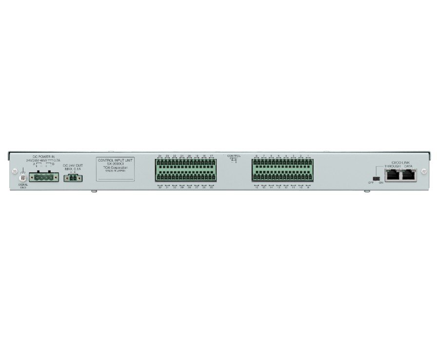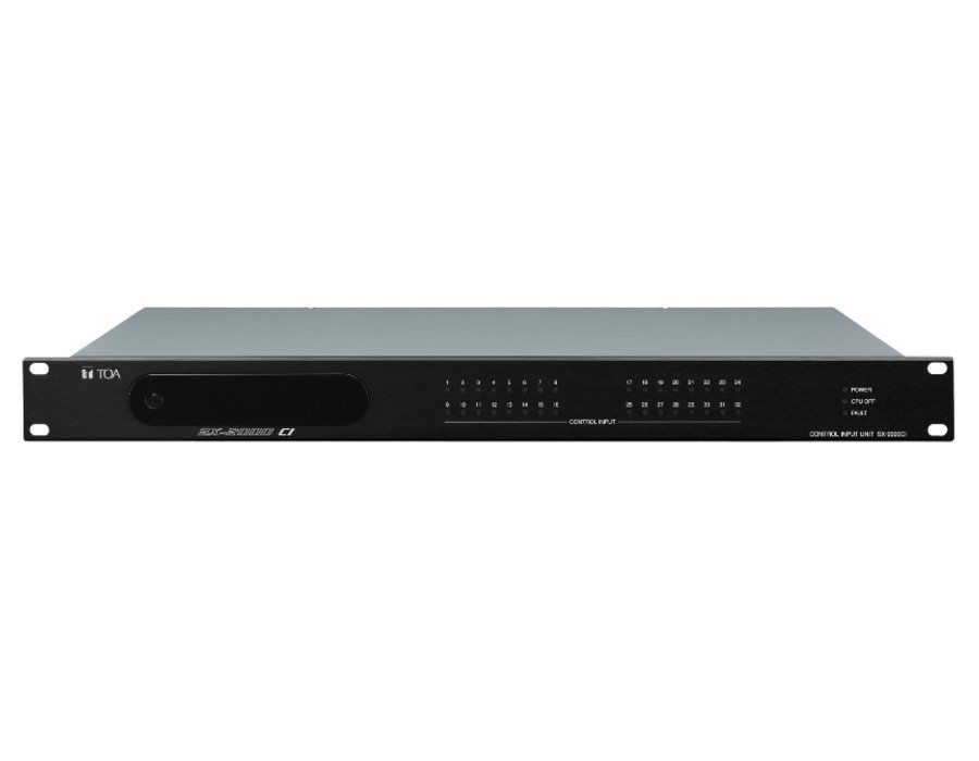 The SX-2000CI is a control input of the matrix system and can be mounted in an EIA equipment rack (1 U size). Multiple units can be decentralized in a whole system. It is equipped with 32 control input channels. Control input line failure can be detected by connecting resistors to its line. The indicators on the front panel monitor the control input line status. The SX-2000CI has a function to supply a stabilized 24 V DC. The SX-2000CI has two power inputs and can support a dual-redundant power supply system. By using a stand-alone mode, system can be configured with only the SX-2000CI, SX-2000CO Control output unit and the power supply unit, permitting the contact data of multiple channels to be transmitted to the remote locations with simple wiring.