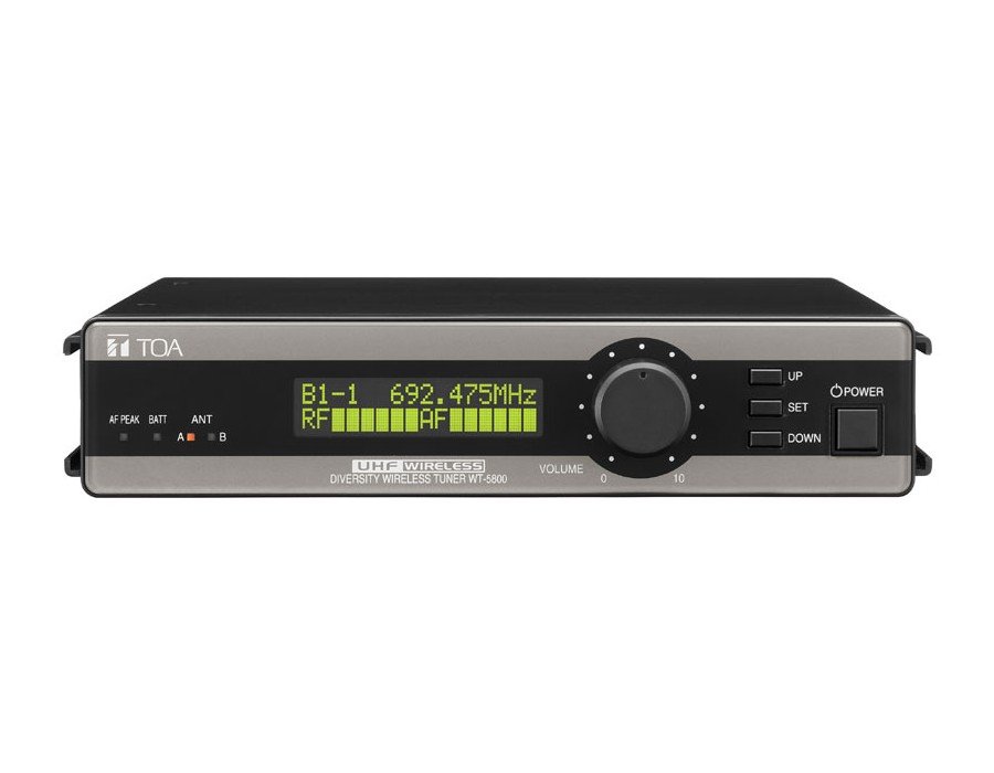 The wireless tuner WT-5800 is a PLL-synthesizer controlled double super-heterodyne true diversity tuner to be used in UHF wireless systems. It employs a compander noise reduction circuit to minimize the influence of the ambient RF noise.