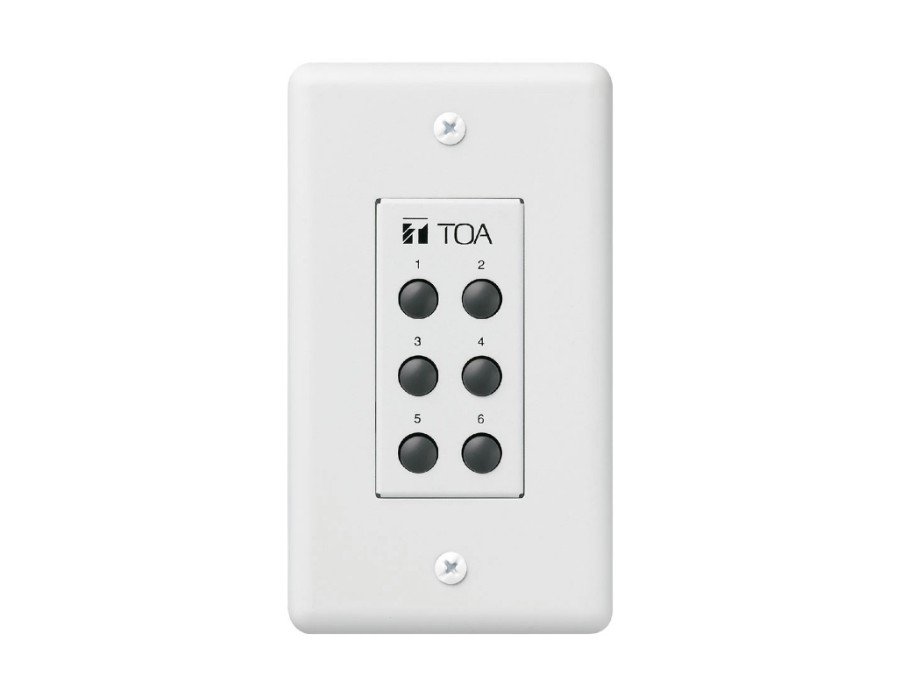 The ZM-9001 is a remote control switch panel used with the 9000 series amplifiers. It provides an additional 6 control inputs of amplifier expansion, and can be mounted in an American standard 1-gang electrical box in the wall.