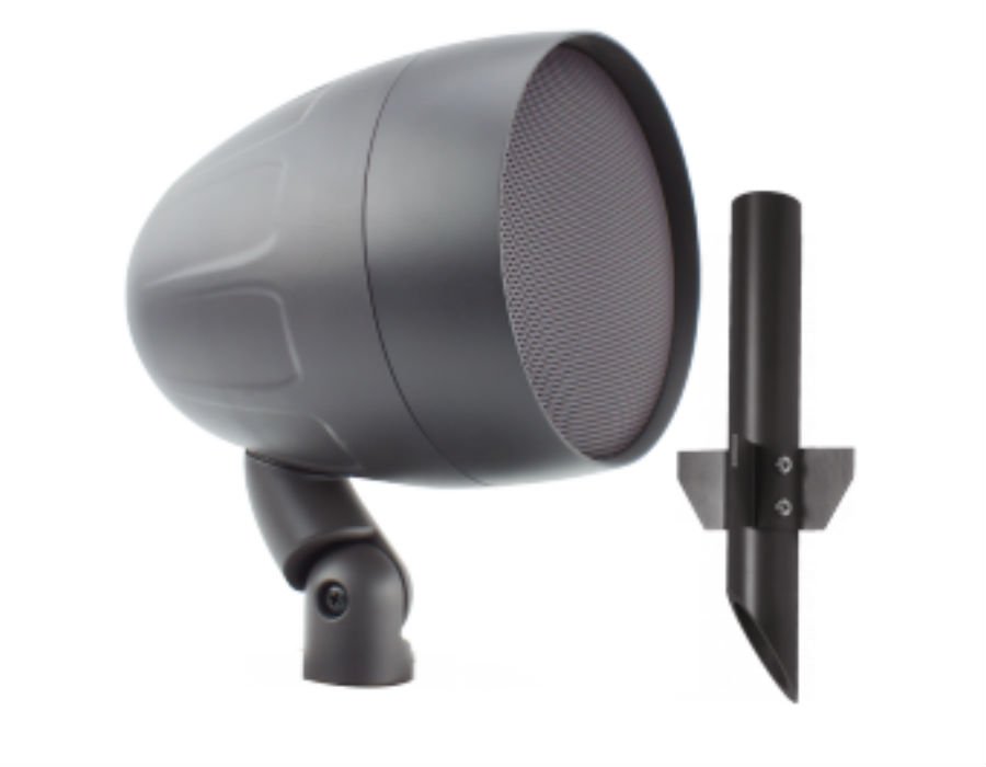 The Acoustiscape™ – sports a 6.5″ polypropylene woofer and 1″ silk soft dome tweeter housed in a stylish, non-corrosive sealed enclosure. With its unique mounting design and wide range of motion, you can position the sound exactly where you want it to go. Transfers from 100 volt or 70 volt to 8 ohm with a simple switch. The Acoustiscape™ also comes complete with 14» (355mm) industrial grade, metal ground stake and optional wall mounting bracket.