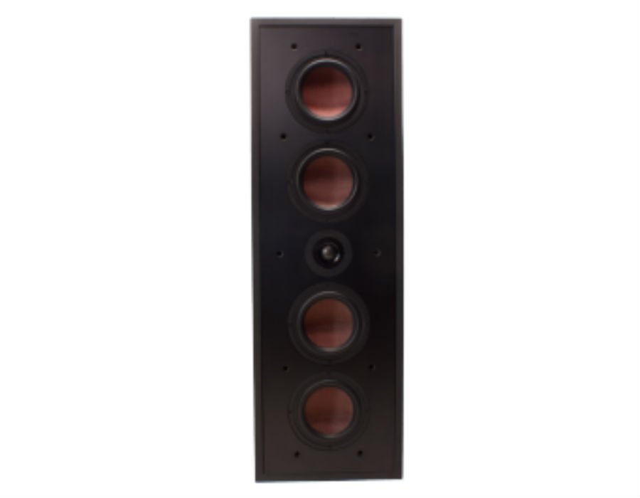 Designed specifically for the most critical listener, this high quality 3-way in wall home theater LCR includes three 6.5” red carbon fiber woofers to decrease the influence room placement has on sound quality. A 1″ titanium diaphragm, swivel tweeter improves sound distribution by directing crisp, clear, and accurate higher frequency sounds to fill a theater room. The 6.5” red carbon fiber mid-range produces smoother frequency response, improved stereo imaging and reducing tonal variations caused by room acoustics. The frameless black cloth grill make installation simply beautiful.