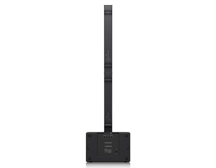 - Precision-lock, aluminium array system eliminates speaker stands and cables