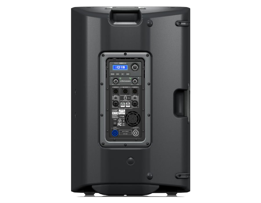 On the rear panel amplifier module, you will find a fully featured user interface consisting of an LCD display, the Channel A and B gain controls, and a single rotary encoder for intuitive access to level, EQ, Speaker modelling, SCC, Subwoofer Integration and Feedback Control (FBI). In addition to the two combination balanced XLR/jack inputs, balanced XLR outputs for each of the two independent channels, and a Mix Out XLR connector, the iQ15 features a mic/line switch and level control with signal present LED on each channel.