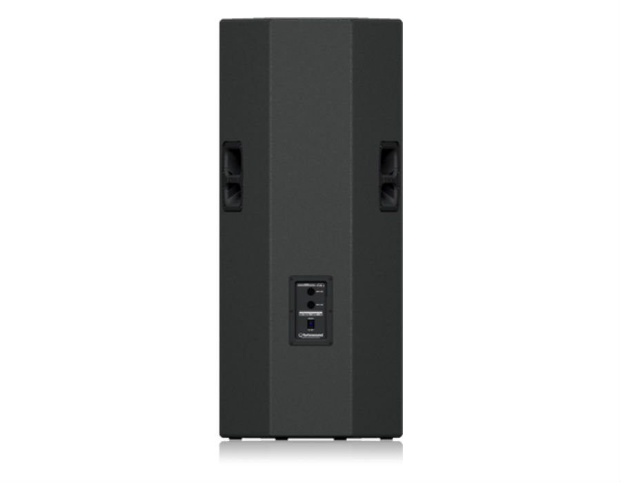 Finished in a highly durable semi matt black paint, the cabinet is constructed from 15 mm (5⁄8″) birch plywood, and includes a rugged powder coated perforated steel mesh grille backed with reticulated foam. The TMS153 utilises durable handles for portability, and is equally suited for permanent install applications. A rear panel connector plate carries two Neutrik speakON* NL4 connectors for input and link connections to additional enclosures.