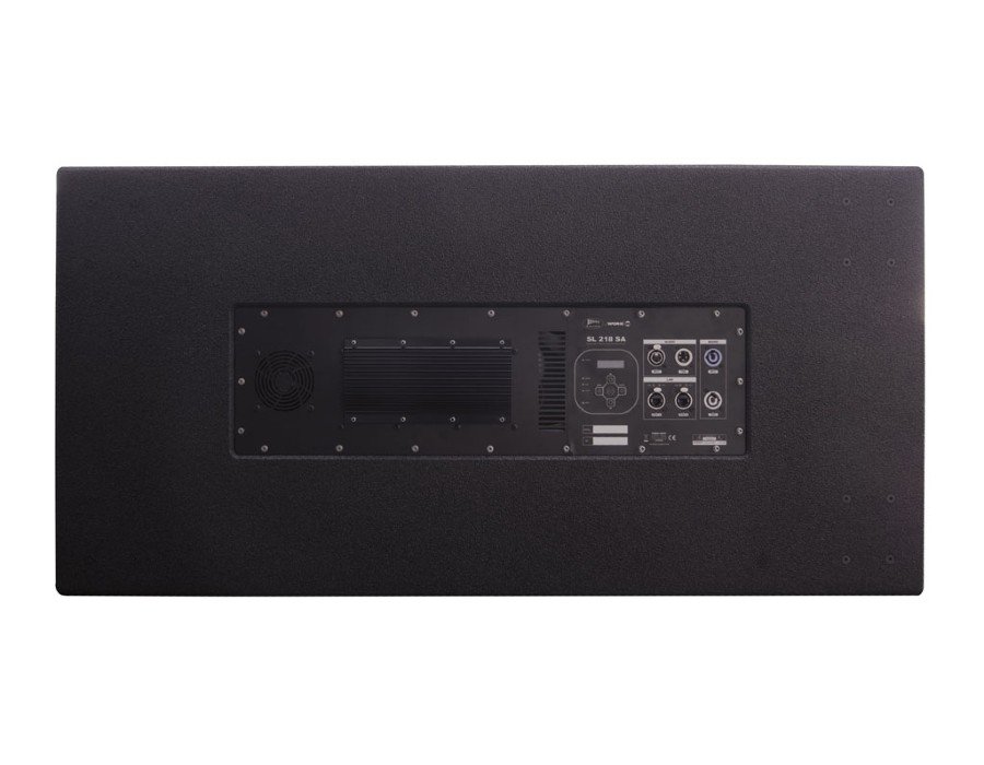SL 218 SA features a powerful digital signal processing, which provides the filtering and the necessary corrections to the transducers in order to obtain a faithful sound. Both from the monitoring software, via Ethernet, and from the keyboard and screen on the rear side, the preset to be used can be chosen. Two low pass crossover frequencies are available with or without enhancement at 55Hz, and their corresponding presets for 1 to 1 cardioid settings (one forward, one backward) or 2 to 1 cardioid settings (two forward, one backward). You can also add delay and use up to 8 parametric filters for room corrections.